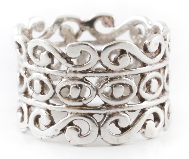 Ezüst(Ag) széles áttört gyűrű, jelzett, méret: 50, nettó: 3,5 g