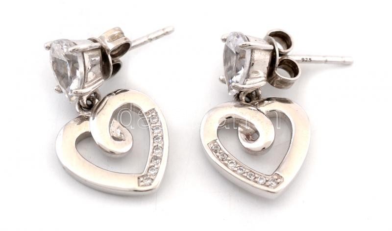 Ezüst(Ag) szívecskés köves fülbevalópár, jelzett, h: 2 cm, bruttó: 4,1...