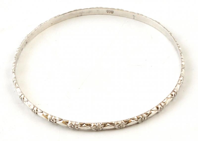 Ezüst(Ag) virágmintás karperec, jelzett, d: 5,6 cm, nettó: 4,7 g