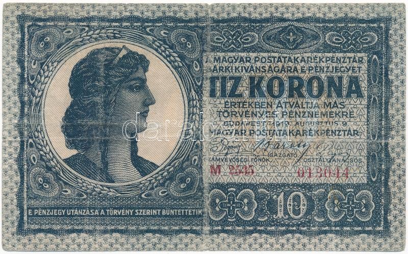https://www.darabanth.com/en/366-Online-auction/366.0/Numismatics/Hungarian-Banknotes~2000007/1919-augusztus-9-10K-M-TIII-lyuk-Adamo-K13~II2118349