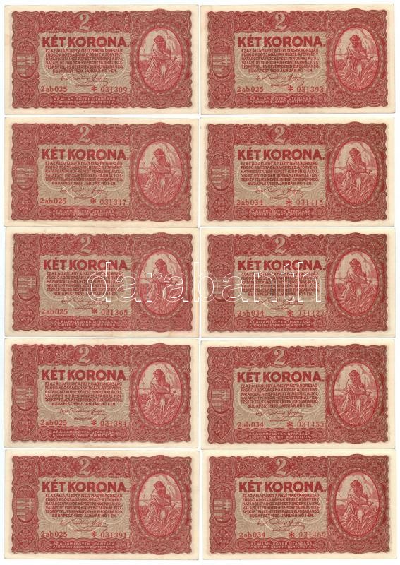 https://www.darabanth.com/en/366-Online-auction/366.0/Numismatics/Hungarian-Banknotes~2000007/1920-2K-2ab-10x-2ab025-es-2ab034-sorozatjelek-kozte-kozeli-sorszamok-es-egy-egyugras~II2119598