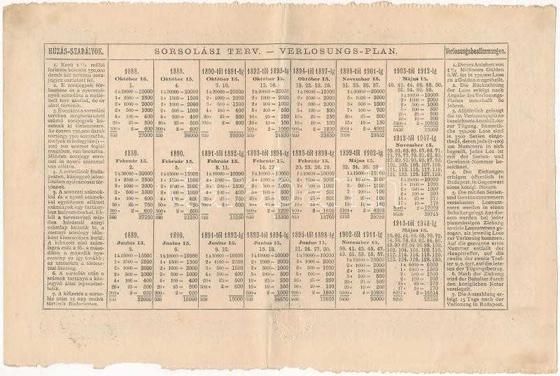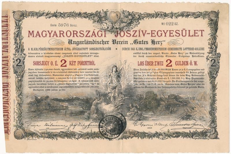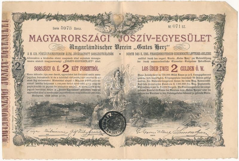 Budapest 1888. "Magyarországi Jószív-Egyesület" sorsjegykölcsön 2Ft-ró...