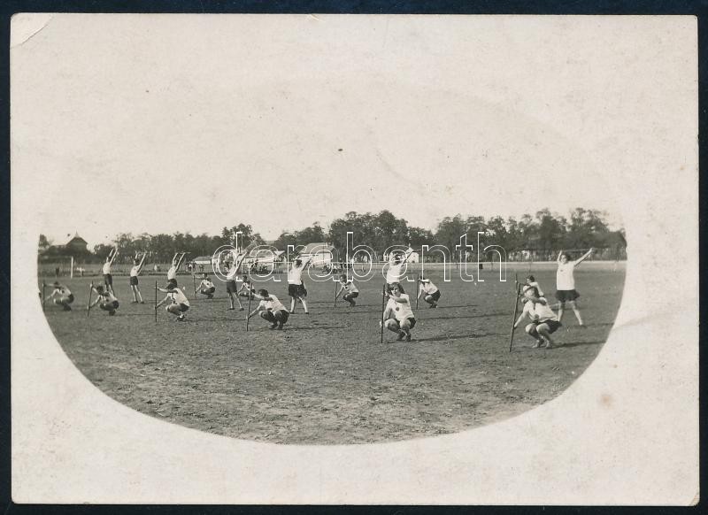 1928 Újpesti V. M. T. meghívásos tornaversenye, hátoldalon feliratozott fotó, 6×9 cm