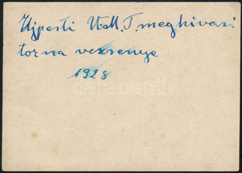 1928 Újpesti V. M. T. meghívásos tornaversenye, hátoldalon feliratozot...