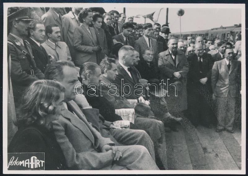 1947 A szolnoki Tisza-híd avatása, hátoldalon feliratozott fotó, 8×11,...