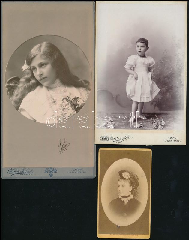 cca 1870-1930 9 db keményhátú fotó és kép klf magyar műtermekből