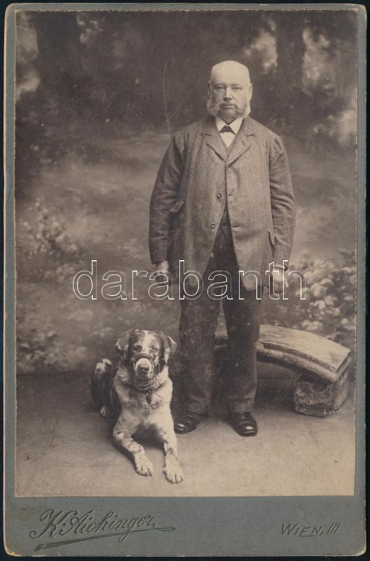 cca 1910 Bécsi kutya és gazdája, K. Aichinger bécsi műtermében készült...
