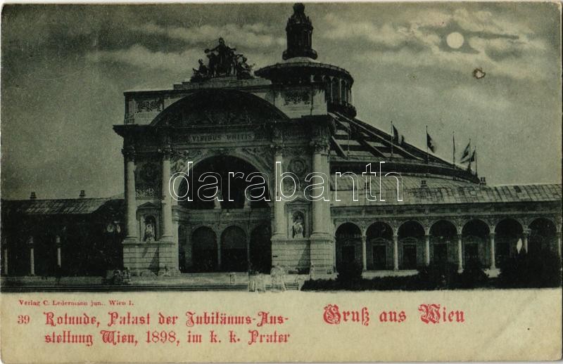Description: Wien, Vienna, Bécs II. Rotunde, Palast der Jubiläums Ausstellung Wien 1898 im k. k. Prater. Verlag C. Ledermann jun. 39. / 50th anniversary of Franz Joseph's reign, Viribus Unitis