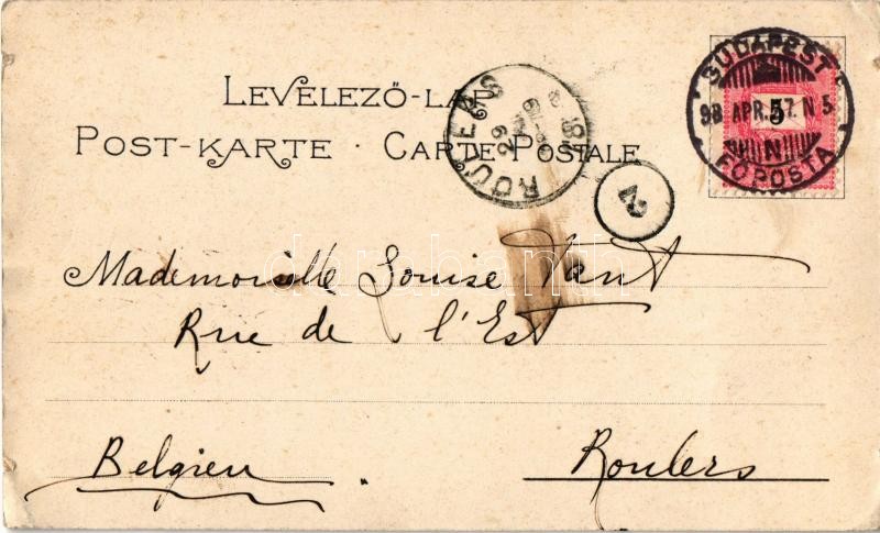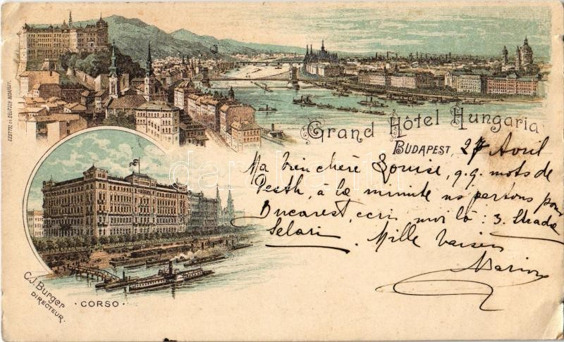 1898 Budapest, Grand Hotel Hungária, Corso. C.J. Burger Art Nouveau litho (EK)