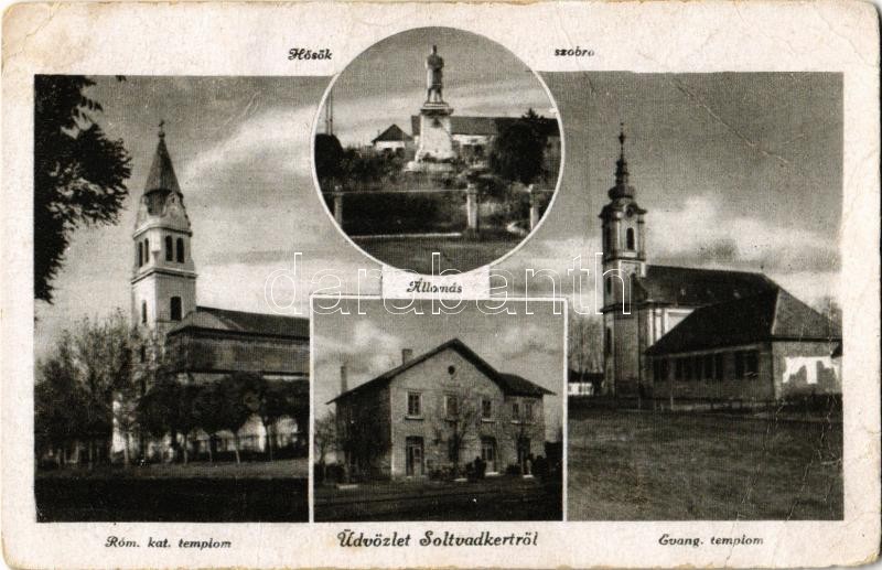 1949 Soltvadkert, Hősök szobra, vasútállomás, evangélikus és római kat...