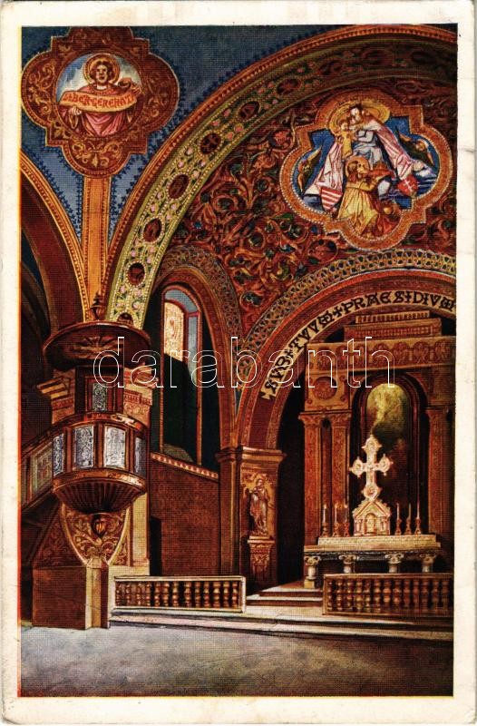 1913 Muzsla, Muzla; Templom belső, díszítette Storno és fia / church i...