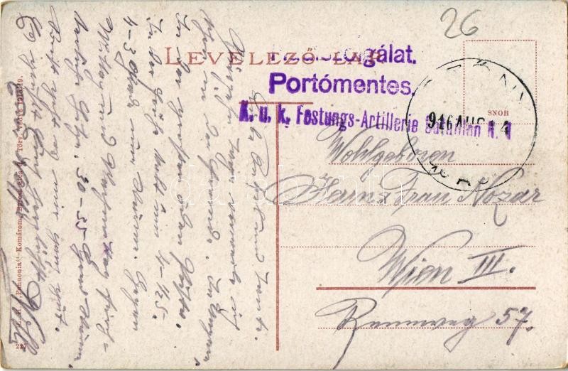 1916 Komárom, Komárnó; hajógyár / Schiff-Fabrik / ship factory + "K.u.K. Festungs-Artillerie Bataillon N. 1. Hadiszolgálat Portómentes"