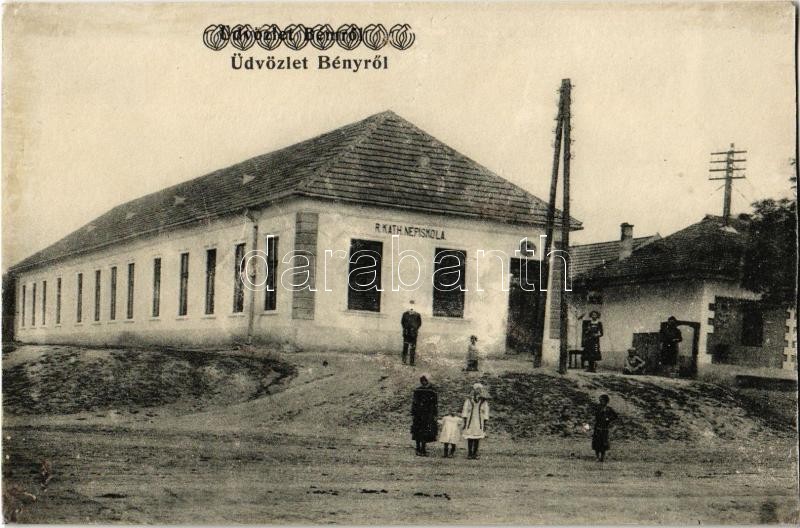 Bény, Bína; Római katolikus népiskola. Dr. Gárdonyi Lajos dohánytőzsde kiadása 2072. / school (r)