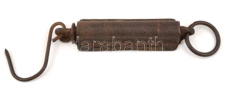Hughes Patent Pocket Balance, fém, kampós zsebmérleg, kopott, rozsdás, 18 cm