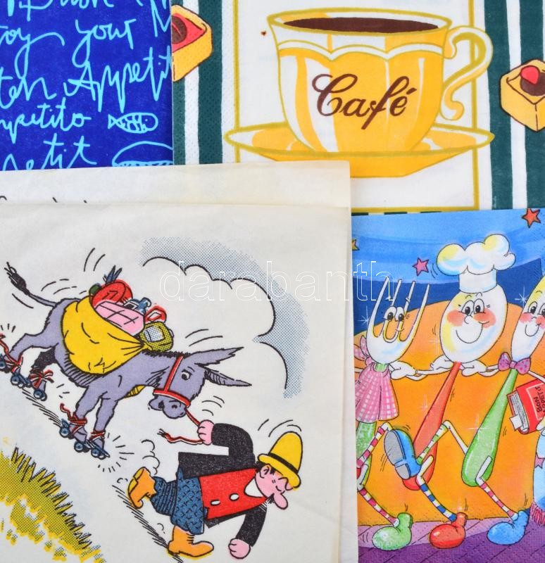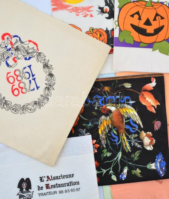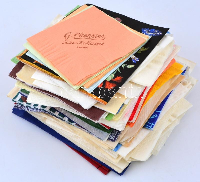 Szalvétagyűjtemény, régi és modern szalvétákkal, kisebb-nagyobb méretb...