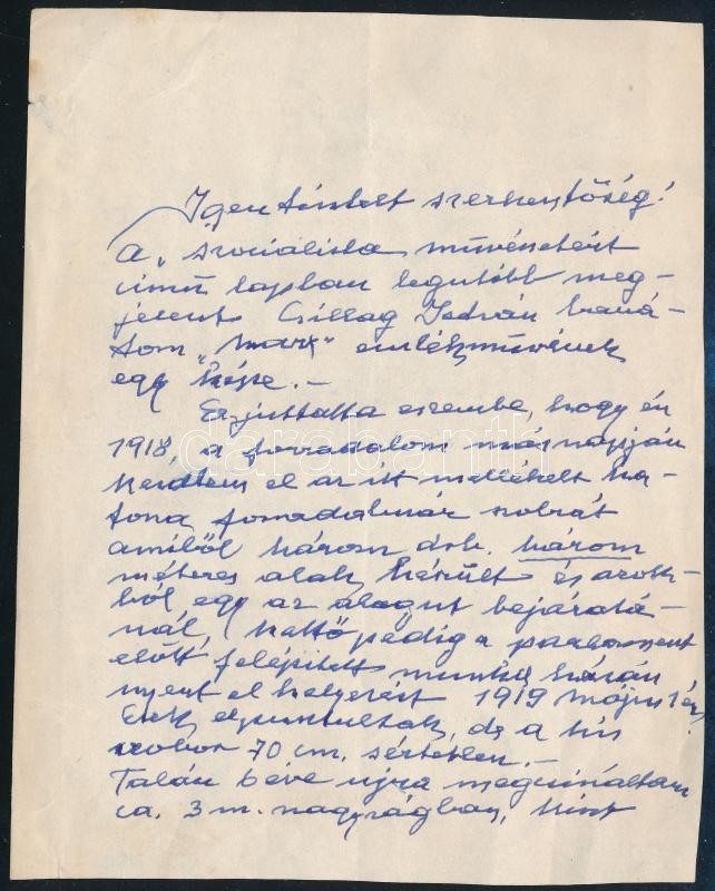 1969 Kisfaludy Stróbl Zsigmond szobrászművész 2 oldalas kézzel írt levele, melyben felajánlja az őszirózsás forradalom idején készült katona szobrát
