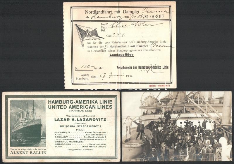 cca 1880-1910 Hajózással, tengerentúli kivándorlással kapcsolatos hirdetések, okmányok, fotók