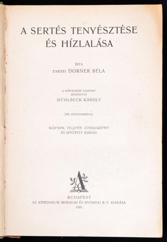 Description: Enesei Dorner Béla: A sertés tenyésztése és hízlalása. Mühlbeck Károly rajzaival. Bp., 1925, Athenaeum, 568 p. Második, teljesen átdolgozott és bővített kiadás. Átkötött félvászon-kötésben, kopott borítóval, laza fűzéssel és lapokkal, bejelölésekkel.