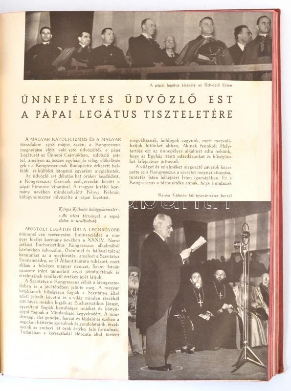 Description: A XXXIV. Nemzetközi Eucharisztikus Kongresszus emlékkönyve. Közrebocsájtja a Kongresszus előkészítő főbizottsága. Bp., 1938, Szent István-Társulat. Fekete-fehér fotókkal illusztrálva. Kiadói aranyozott egészvászon kötés, festett lapélekkel, kissé kopott