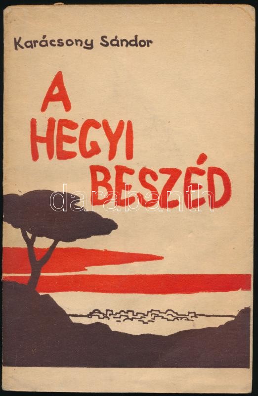 Karácsony Sándor: Hegyi Beszéd. Bp., 1941, Exodus. 2. kiadás. Kiadói papírkötés. Borító hátoldala enyhén foltos, gerinc kisebb szakadással.
