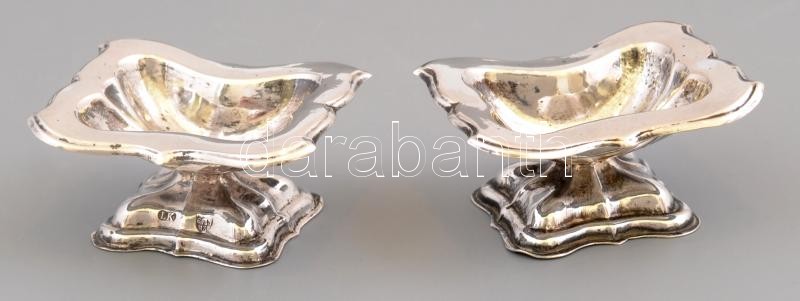Ezüst(Ag) antik fűszertartó pár, jelzett, mesterjeggyel (LK), 6,5×5,3×3,2 cm, nettó: 44,9 g