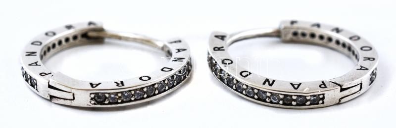 Ezüst(Ag) apró kövekkel díszített karikafülbevaló-pár, Pandora jelzéssel, d: 1,8 cm, bruttó: 2,7 g