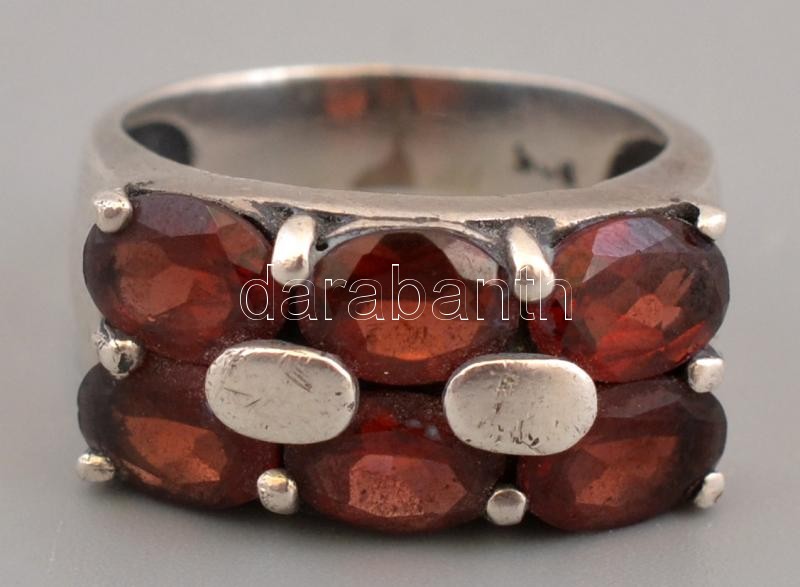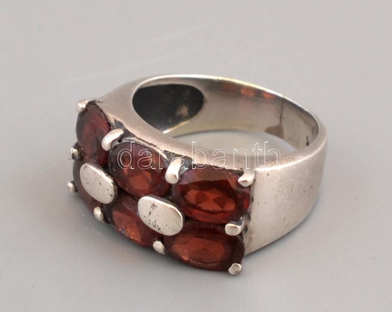 Ezüst(Ag) gránát kővel díszített gyűrű, jelzett, méret: 52, bruttó: 6 g