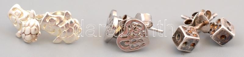 Ezüst(Ag) három pár fülbevalópár, jelzett, nettó: 3,3 g