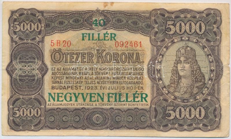 https://www.darabanth.com/en/367-Online-auction/367.0/Numismatics/Hungarian-Banknotes~2000007/1923-5000K-nyomdahely-jeloles-nelkul-40-FILLER-NEGYVEN-FILLER-felulbelyegzessel-TIII-f~II2130217
