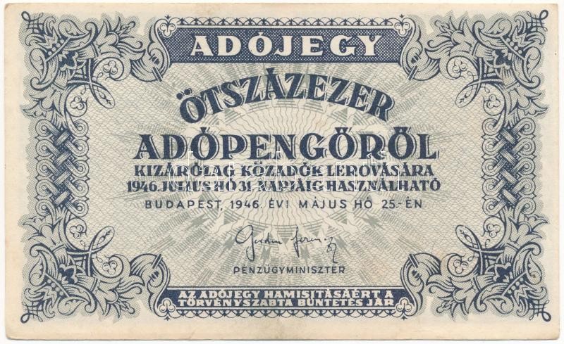 1946. 500.000AP sorozat- és sorszám nélkül T:I-