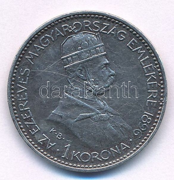 https://www.darabanth.com/en/367-Online-auction/367.0/Numismatics/Hungarian-coins-and-coins-with-Hungarian-mint-marks~2000008/1896KB-1K-Ag-Millennium-T1-patina-Adamo-K52~II2127064