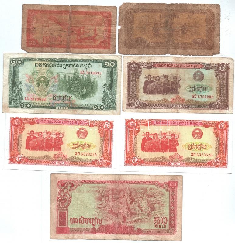 Kambodzsa 0,5R - 50R 7db, 6klf, benne sorszámkövető 5R 1987 pár, T:veg...