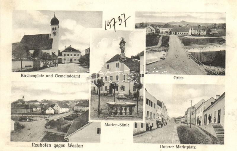 Neuhofen an der Krems, Kirchenplatz und Gemeindeamt, Gries, Marien-Säule, Unterer Marktplatz, Bier Depot, Brauerei / church square, monument, streets, brewery and beer shop (Rb)