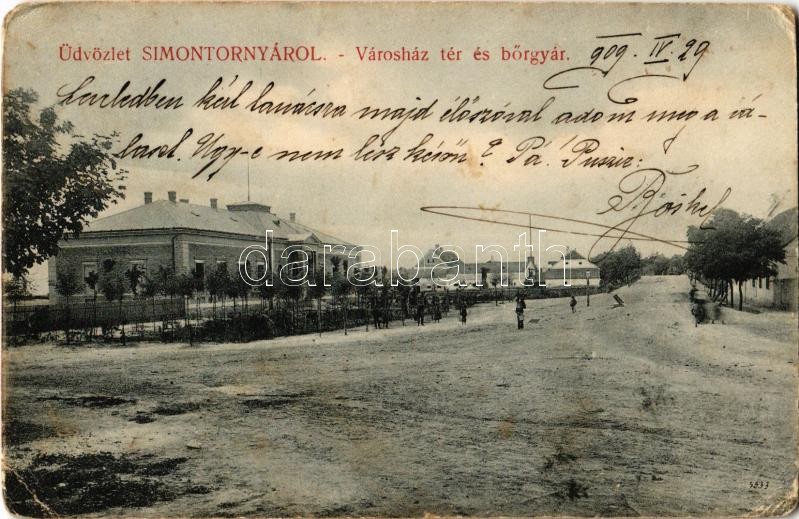 1909 Simontornya, Városház tér, bőrgyár (Rb)