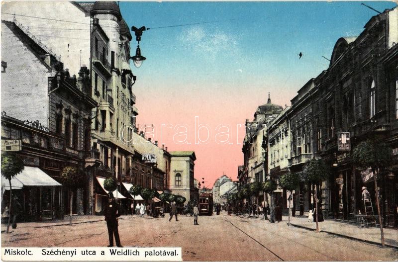 https://www.darabanth.com/en/367-Online-auction/367.0/Postcards/Hungary~1000005/1914-Miskolc-Szechenyi-utca-villamos-Weidlich-palota-uzletek~II2130229