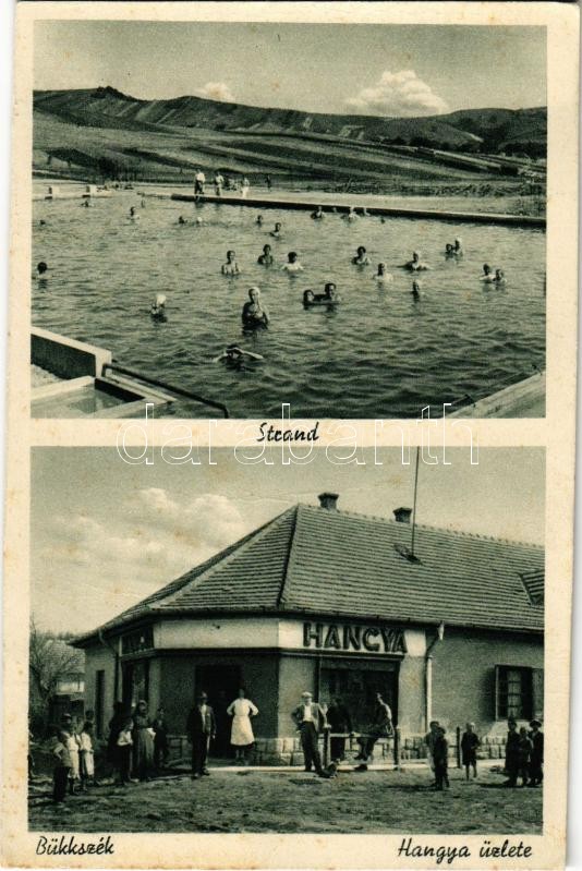 Bükkszék, Strand, fürdőzők, Hangya Szövetkezet üzlete és saját kiadása...