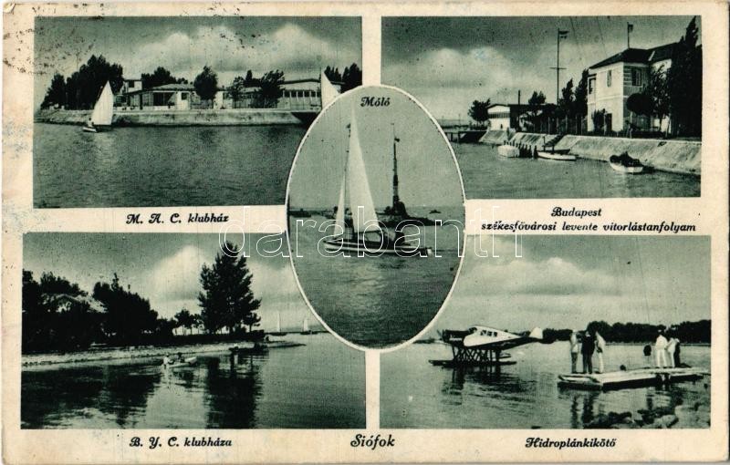 Siófok, MAC és BYC klubházai, hidroplán kikötő, móló, székesfővárosi l...