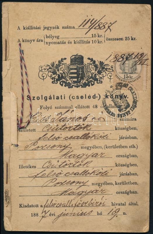 https://www.darabanth.com/en/368-Online-auction/368.0/Art-and-other-collectibles/Documents~1000019/1887-Szolgalati-cseledkonyv-fuzve-kotes-nelkul~II2132817