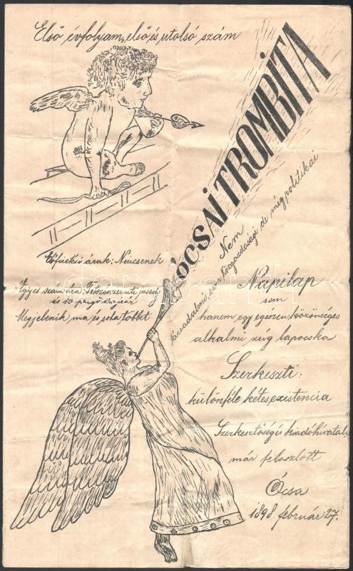 https://www.darabanth.com/en/368-Online-auction/368.0/Art-and-other-collectibles/Historical-documents-manuscripts~1000020/1898-Ocsai-Trombita-I-evfolyam-elso-es-utolso-szama-kezzel-rajzolt-es-irt-stencilezett~II2137294