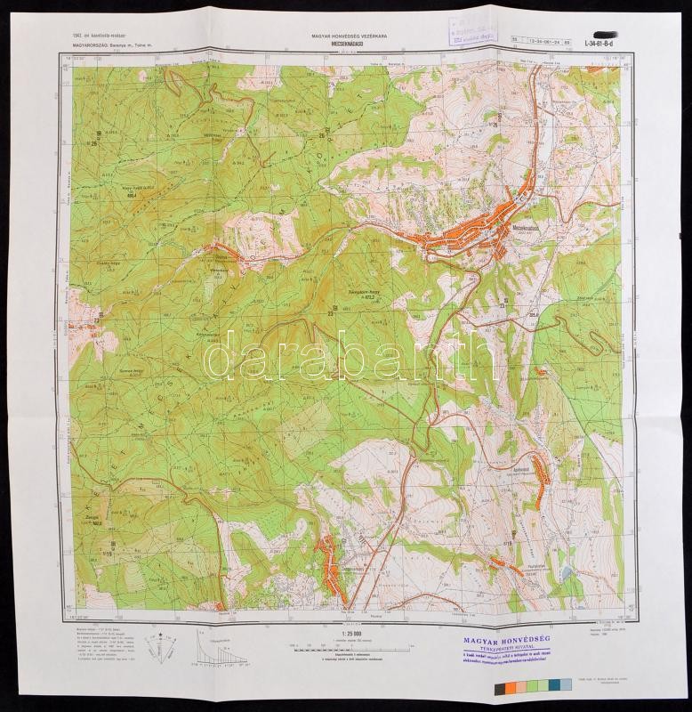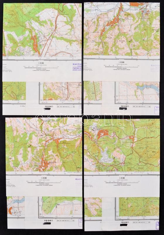 cca 1989-1990 Magyarország 4 db topográfiai térképe, Komló, Mecseknádasd, Mázaszászvár, Magyaregregy, Magyar Honvédség vezérkara felirattal és bélyegzővel, 1:25000, ca. 46,5x46,5 cm,