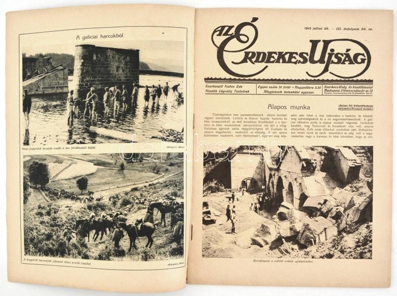 1915. július 25. Az Érdekes Újság III. évfolyamának 30. száma, benne ... https://www.darabanth.com/en/368-Online-auction/368.0/Art-and-other-collectibles/Military~1000030/1915-julius-25-Az-Erdekes-Ujsag-III-evfolyamanak-30-szama-benne-szamos-katonai-foto-a~II2131676