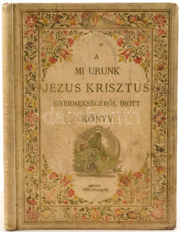 Tóth Béla: A mi urunk Jézus Krisztus gyermekségéről írott könyv, mellyet mostan negyedszer bővebben és hellyessebben nyomtattak. Bp., 1895., Pallas, 59+3 p.+5 t. Kiadói aranyozott, festett egészvászon-kötés, Gottermayer-kötés, kopott, foltos borítóval.