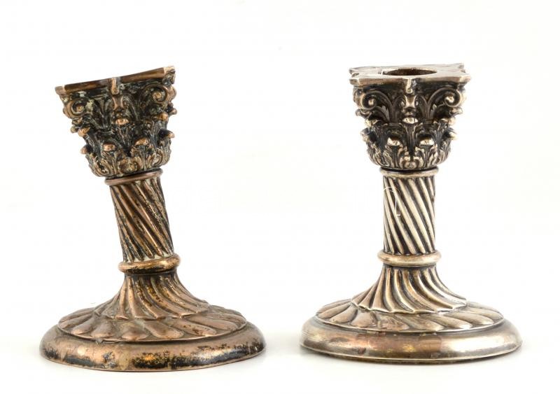 Ezüst (Ag) gyertyatartó pár. korinthoszi oszlop formában. Jelzett. Súl...