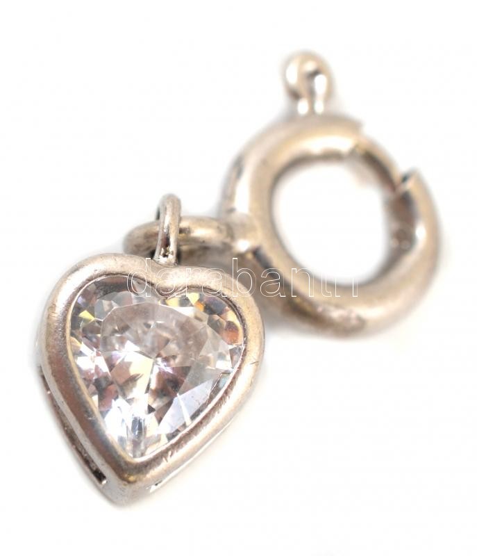 Ezüst(Ag) szív alakú charm, kővel, jelzett, h: 2 cm, bruttó: 1 g