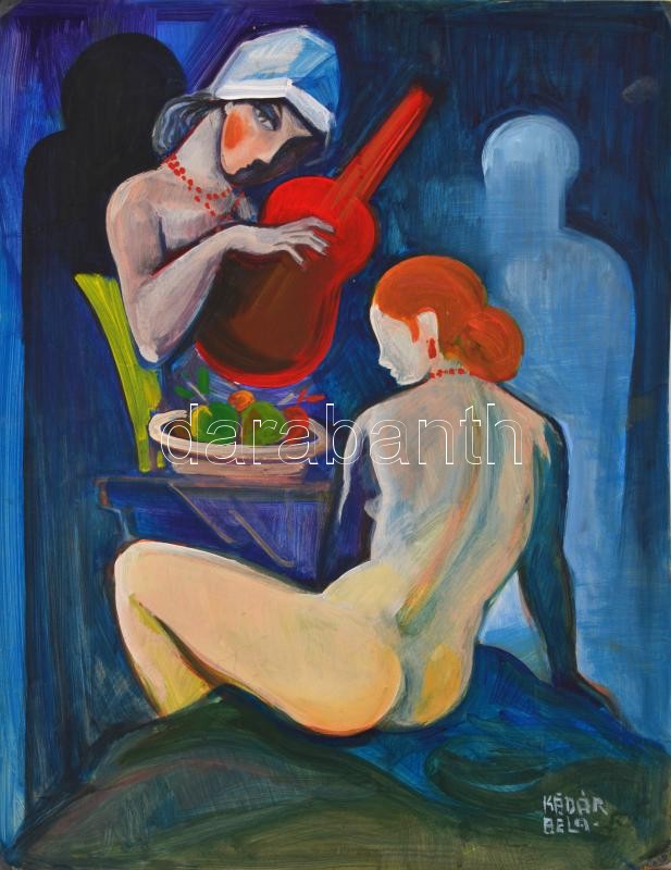 Kádár jelzéssel: Zenélő aktok. Vegyes technika, karton, sarkainál töré...