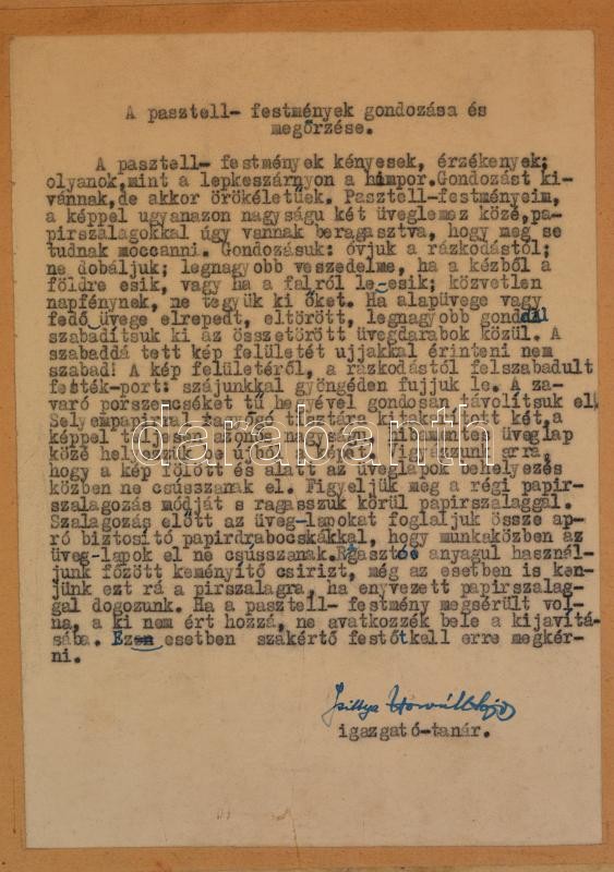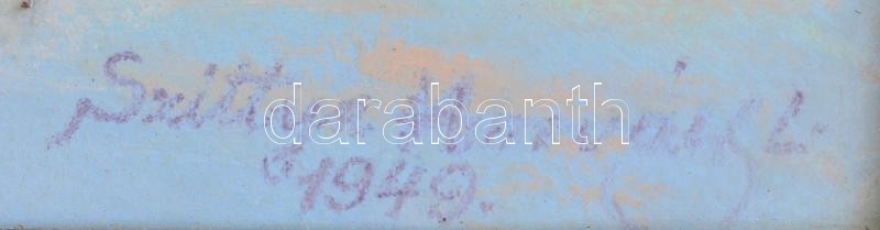 Description: Szittya Horváth Lajos (1883-1960): Győr-Sopron megyei táj ,1949. Pasztell, papír. jelzett, hátoldalán az alkotó tanácsadásaival pasztellfestmények gondozásáról és megőrzéséről. Üvegezett fa keretben, 25,5x35,5 cm