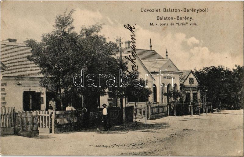 1909 Balatonberény, Balaton-Berény; M. kir. posta és Erzsi villa. Neum...