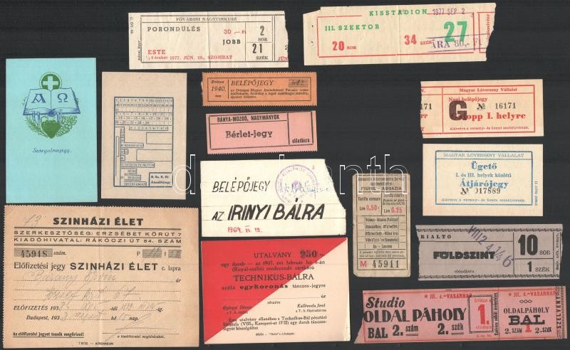 Vegyes jegy és utalvány tétel (szorgalomjegy, Színházi Élet előfizetési jegy, utalvány technikus bálra, stb.), 14 db