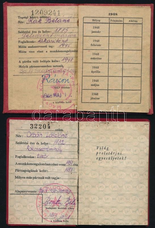 cca 1947 MKP tagsági igazolványok Rákosi Mátyás és Biszku Béla bélyegz...