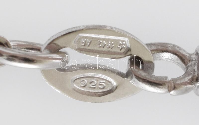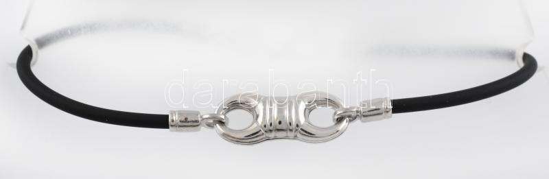 Fekete gumi karkötő, ezüst(Ag) elemekkel, jelzett, h: 16 cm